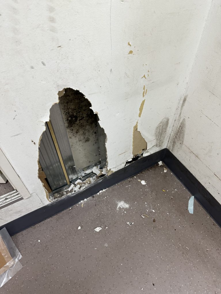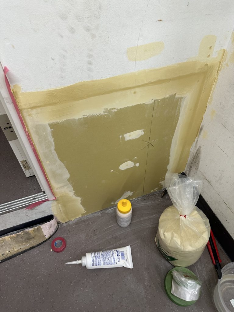 店舗さんからの依頼で壁に穴が開いたので補修してほしいとの事で、補修しに行きました!