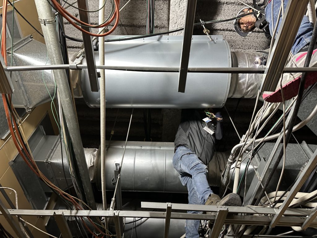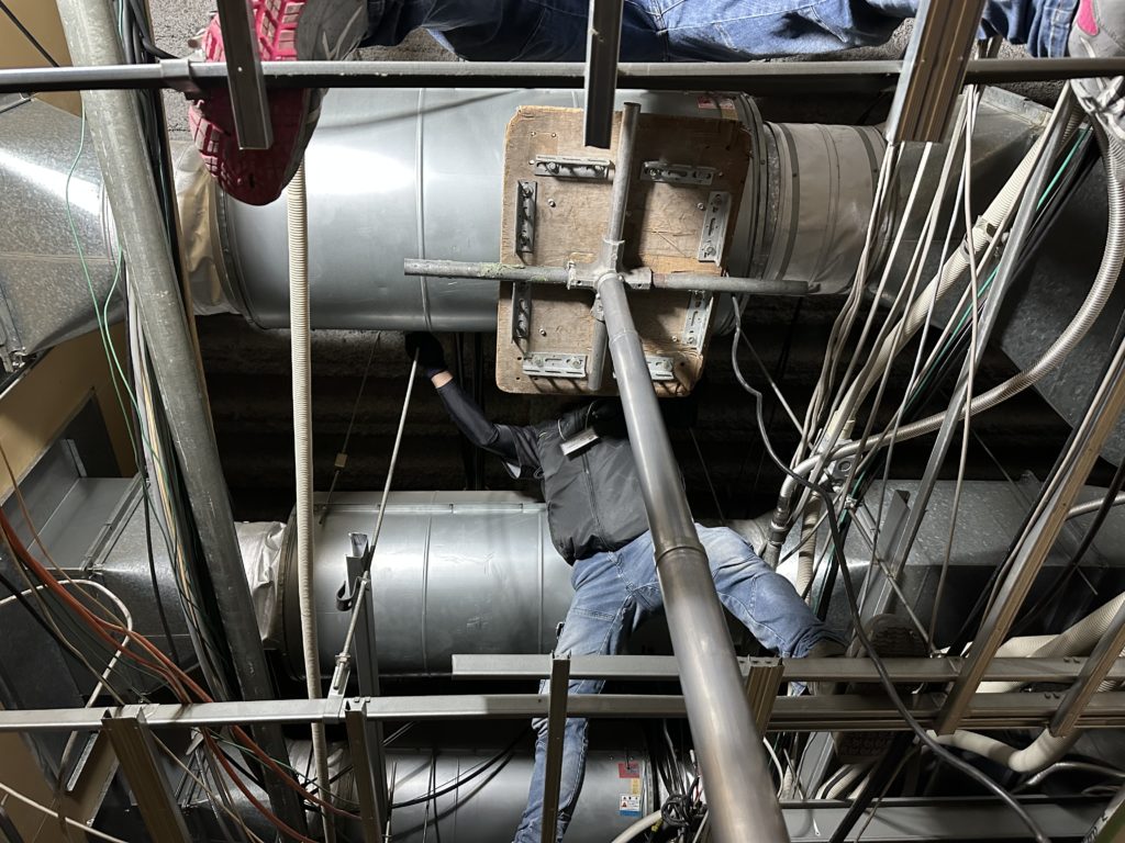 各階足場解体しながらのダクト工事でした